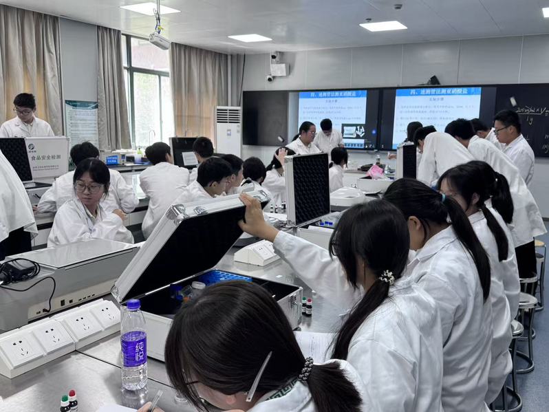 为深化中高职一体化人才培养改革,推动专业教学与区域产业需求深度融合,9月22日至26日,杭州市良渚职业高级中学食品检验检测技术专业24级(五年一贯制)35名学生来我校进行中高职一体化课程——《食品分析综合实训》的学习。本次综合实训以中高职一体化人才培养目标为导向,通过“产业标准融入教学、高职资源下沉支撑”,助力学生夯实专业基础,衔接高职阶段学习与行业岗位需求。