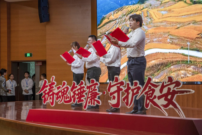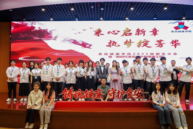新生才艺秀环节,学生以舞蹈、歌曲等形式展现学院青年学子积极向上的精神风貌。新生大会在合唱团《奇迹再现》的歌声中落下帷幕。大会以“铸魂工程”启动为契机,将“四立教育”融入食安人才培养全过程,传达了学院老师们的殷殷嘱托、深切期望2025级新生们将以大会为起点,践行“厚德崇商”校训,在立德中坚守食安初心,在立身中挑战自我,在立学中夯实专业基础,在立能中锤炼实践本领,在食品健康领域奋力书写青春华章。