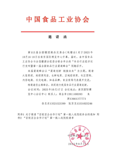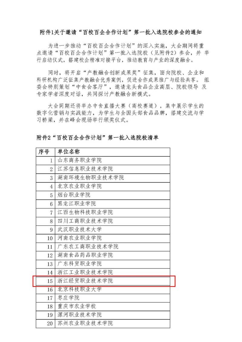 在“双高计划”引领下,浙江经贸职业技术学院持续深化教育教学改革,强化校企协同育人机制。本次参与“百校百企合作计划”,不仅是学校服务国家食品工业高质量发展的重要举措,也是推动职业教育与产业需求深度融合的生动实践。峰会期间,学校将参与“产教融合创新成果奖”征集、中食会客厅对话、中食直播大赛(高校赛道)等一系列活动,全面展示学校在食品健康领域的人才培养与创新能力。