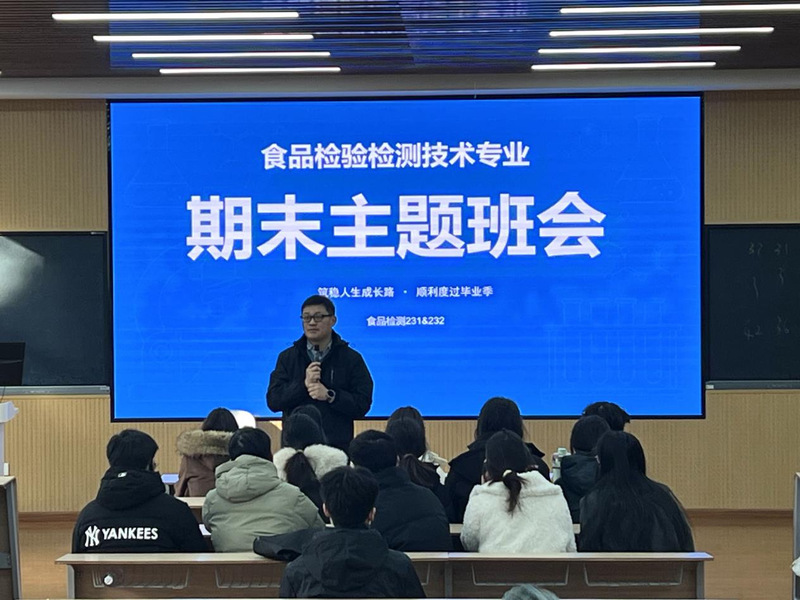 为全面总结实习成果、引导学生树立正确就业观,2026年1月12日,食品检验检测技术专业组织召开2023级顶岗实习总结交流会暨就业指导专题会议,食品231、232班全体学生参会。