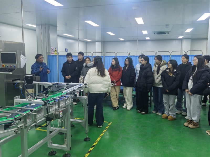 在浙江爱生药业有限公司,同学们通过企业技术人员的详细讲解,系统了解了企业发展、行业趋势、文化价值观及岗位能力要求、职业发展路径。在现代化的药物制剂生产车间,同学们学习了从原料准备到成品包装的完整流程,听取了洁净区管理、环境监测及关键设备操作要点等介绍。通过现场学习,同学们对药品生产的质量管理体系以及GMP核心要求有了直观而深刻的认识。