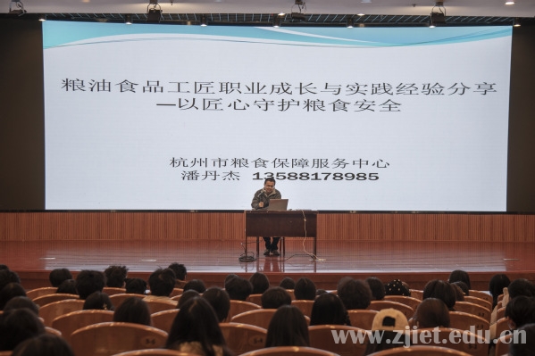 杭州市粮食保障服务中心的“杭州工匠”潘丹杰,围绕食品检测行业的发展趋势、核心技术应用及行业规范标准,进行了系统且翔实的解读。结合自身多年深耕食品质量安全检测领域的实践经验,潘丹杰重点分享了如何在专业道路上持续精进、深耕细作,鼓励同学们扎实筑牢专业基础,主动关注行业动态,积极投身食品健康事业,以专业能力守护群众“舌尖上的安全”。